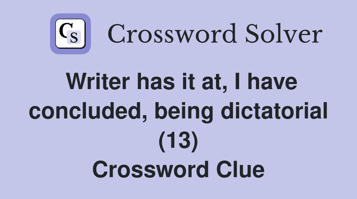 Writer has it at I have concluded being dictatorial (13) Crossword
