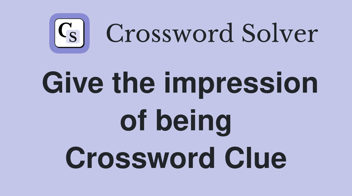 Give the impression of being Crossword Clue Answers Crossword Solver