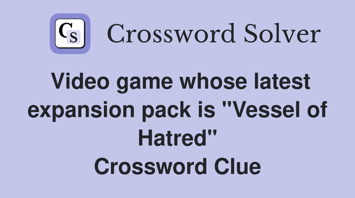 Video game whose latest expansion pack is quot Vessel of Hatred