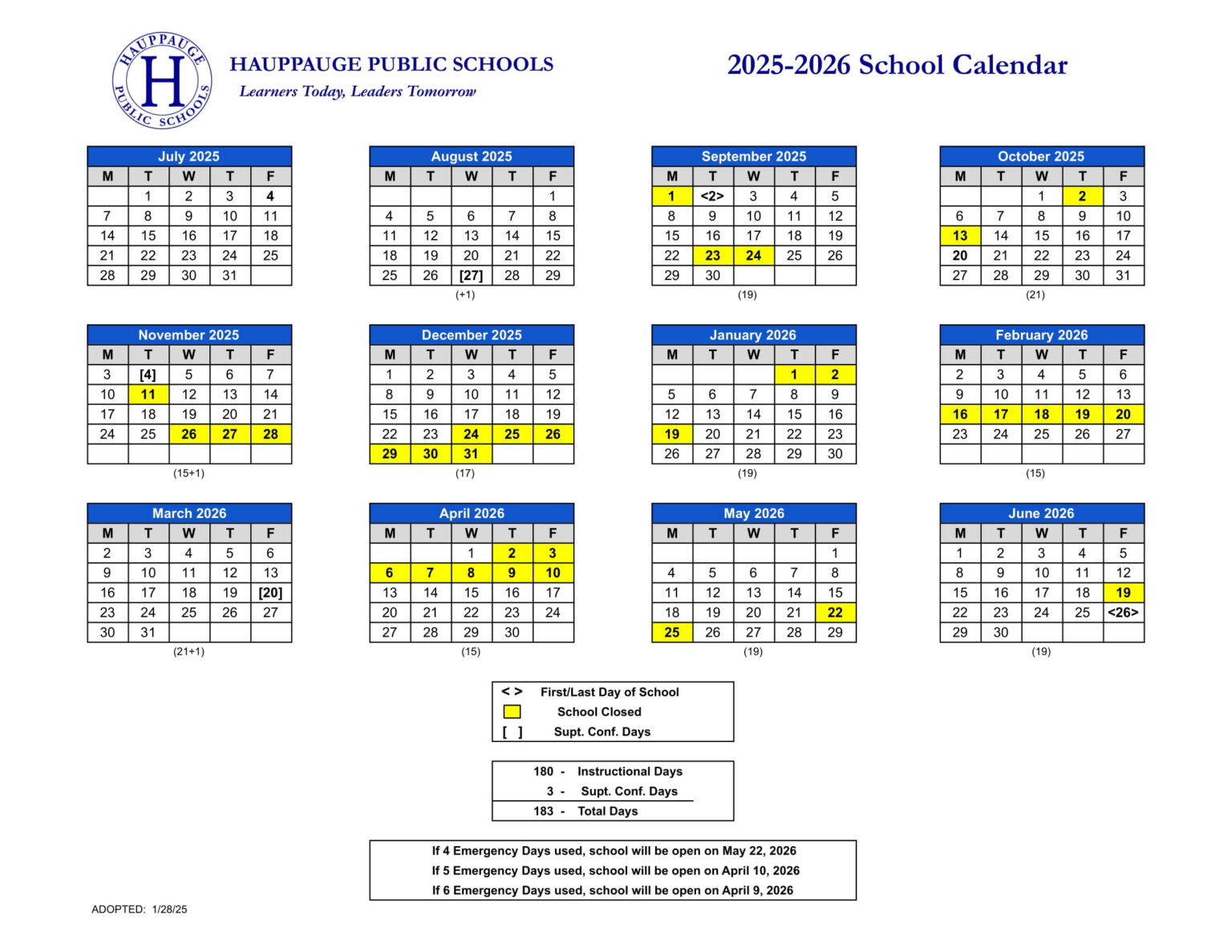 2025 2026 School Calendar Hauppauge Public Schools