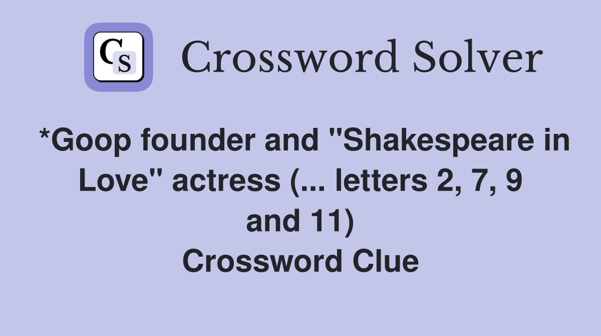 *Goop founder and quot Shakespeare in Love quot actress ( letters 2 7 9