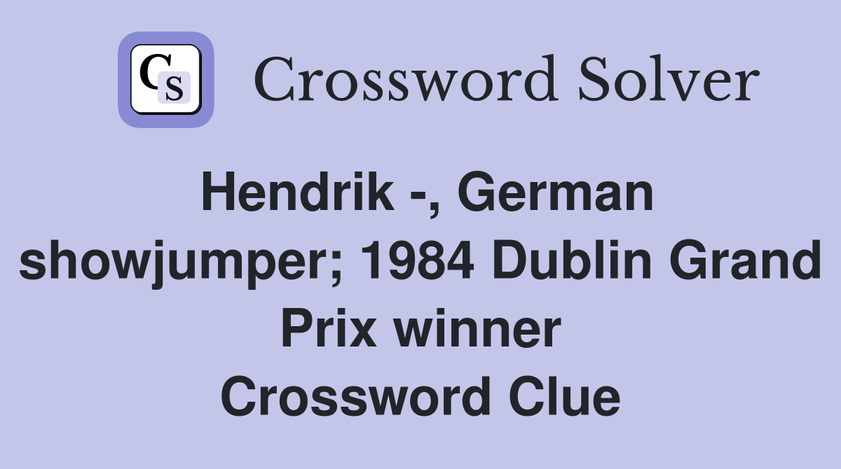 Hendrik German showjumper 1984 Dublin Grand Prix winner Crossword