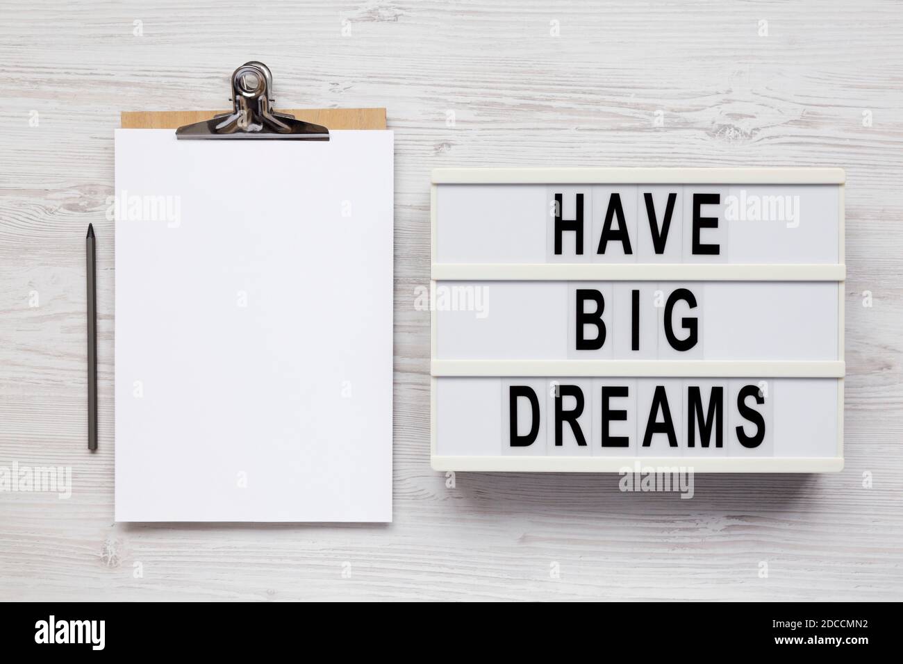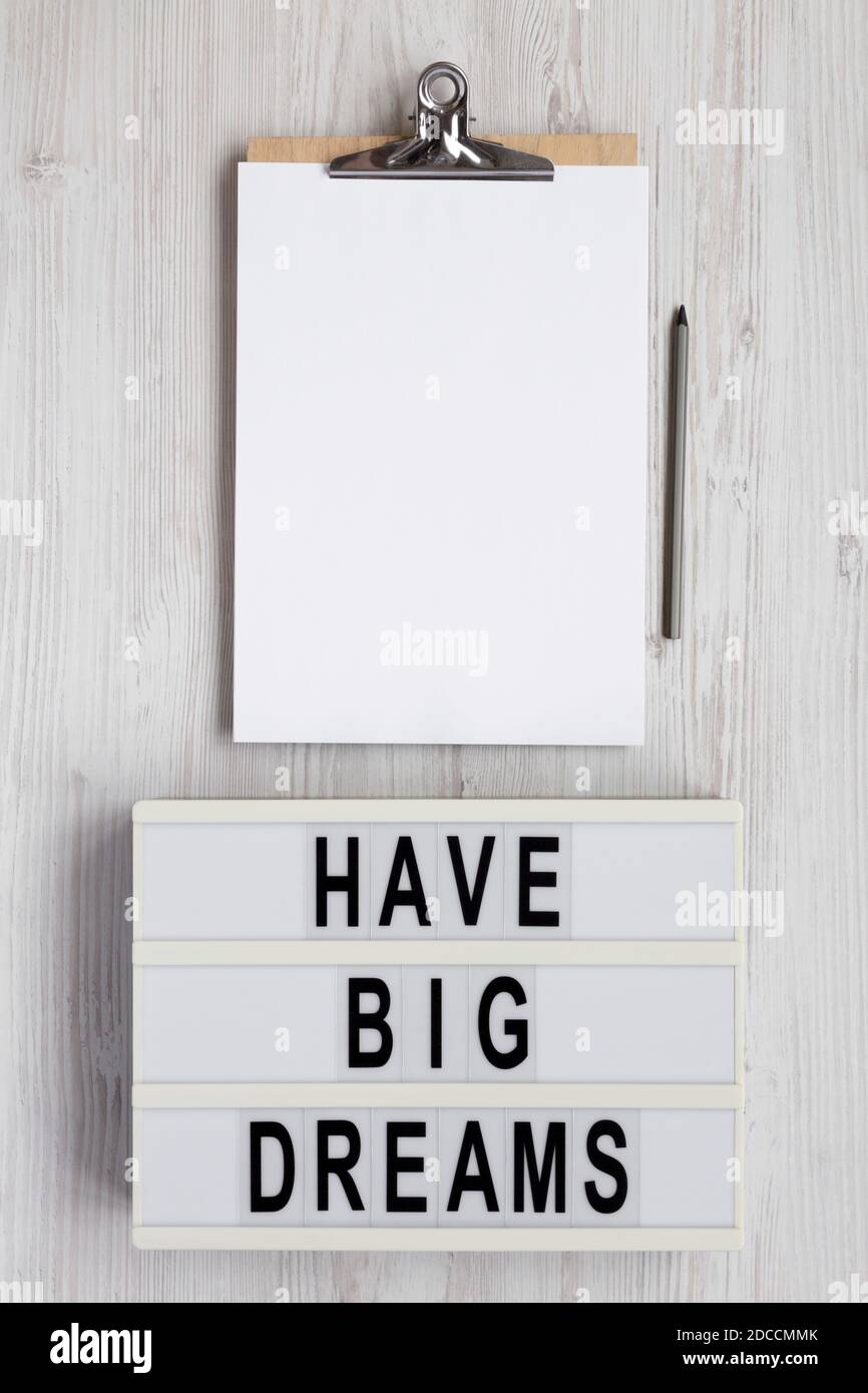 #39 Have Big Dreams #39 on a lightbox clipboard with blank sheet of paper on