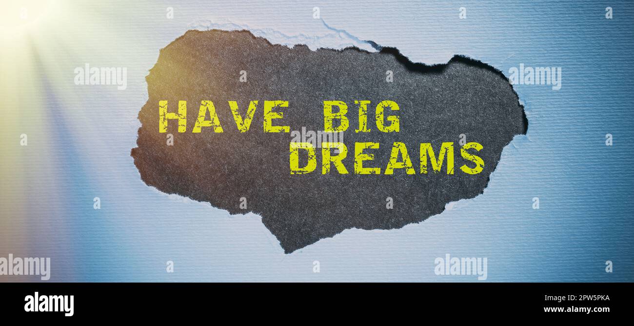 Sign displaying Have Big Dreams Business concept Future Ambition