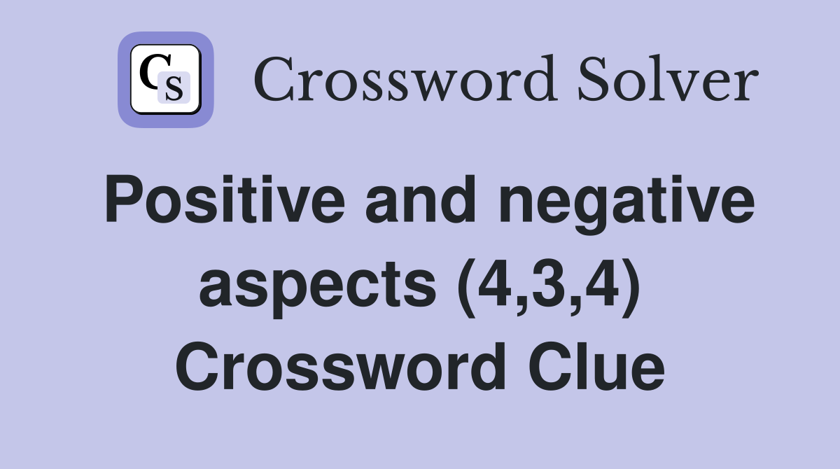 Positive and negative aspects (4 3 4) Crossword Clue Answers