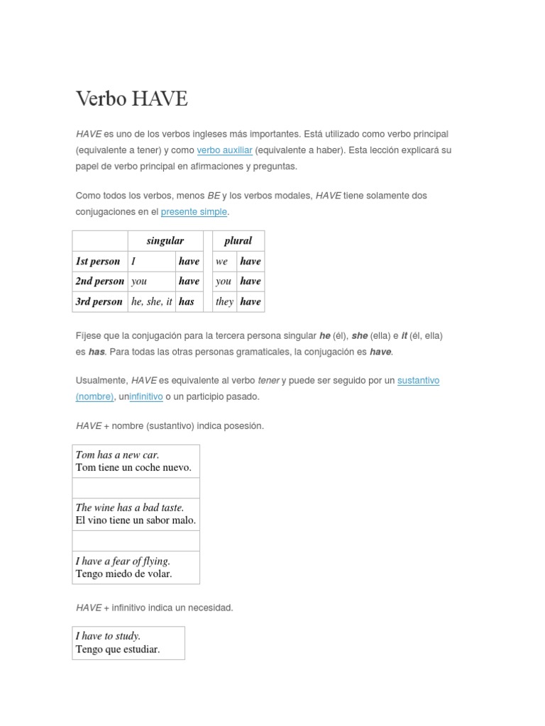Cómo Se Utiliza El Verbo Have PDF Lingüística