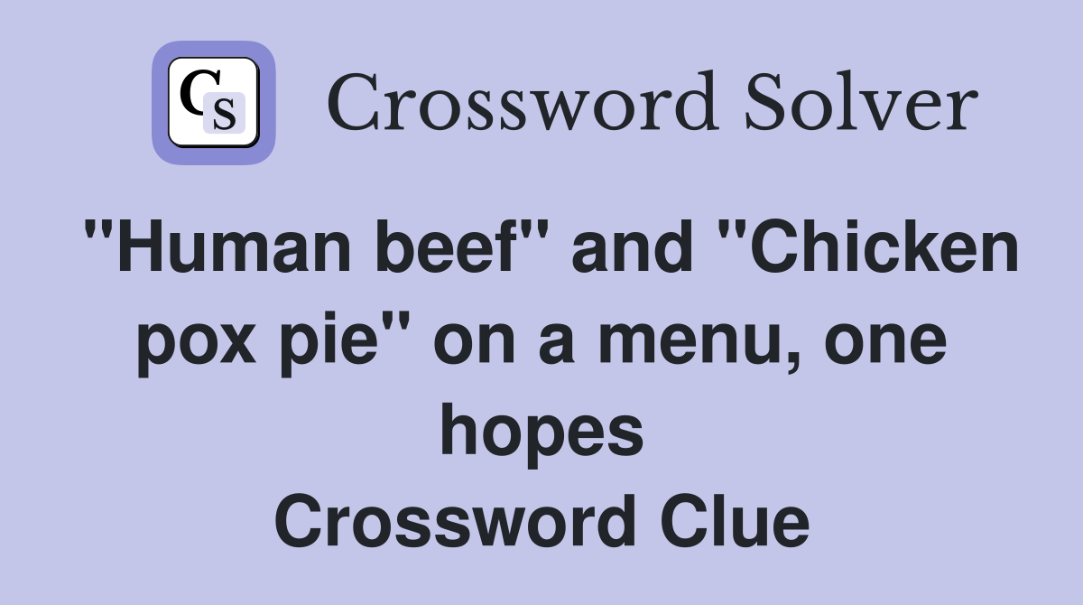 quot Human beef quot and quot Chicken pox pie quot on a menu one hopes Crossword