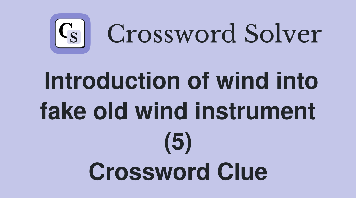 Introduction of wind into fake old wind instrument (5) Crossword Clue