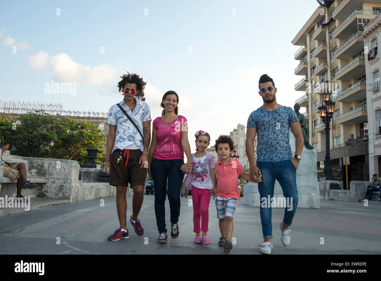 Happy Family on a Walk in the City Mom Dad and Teenage Daughter