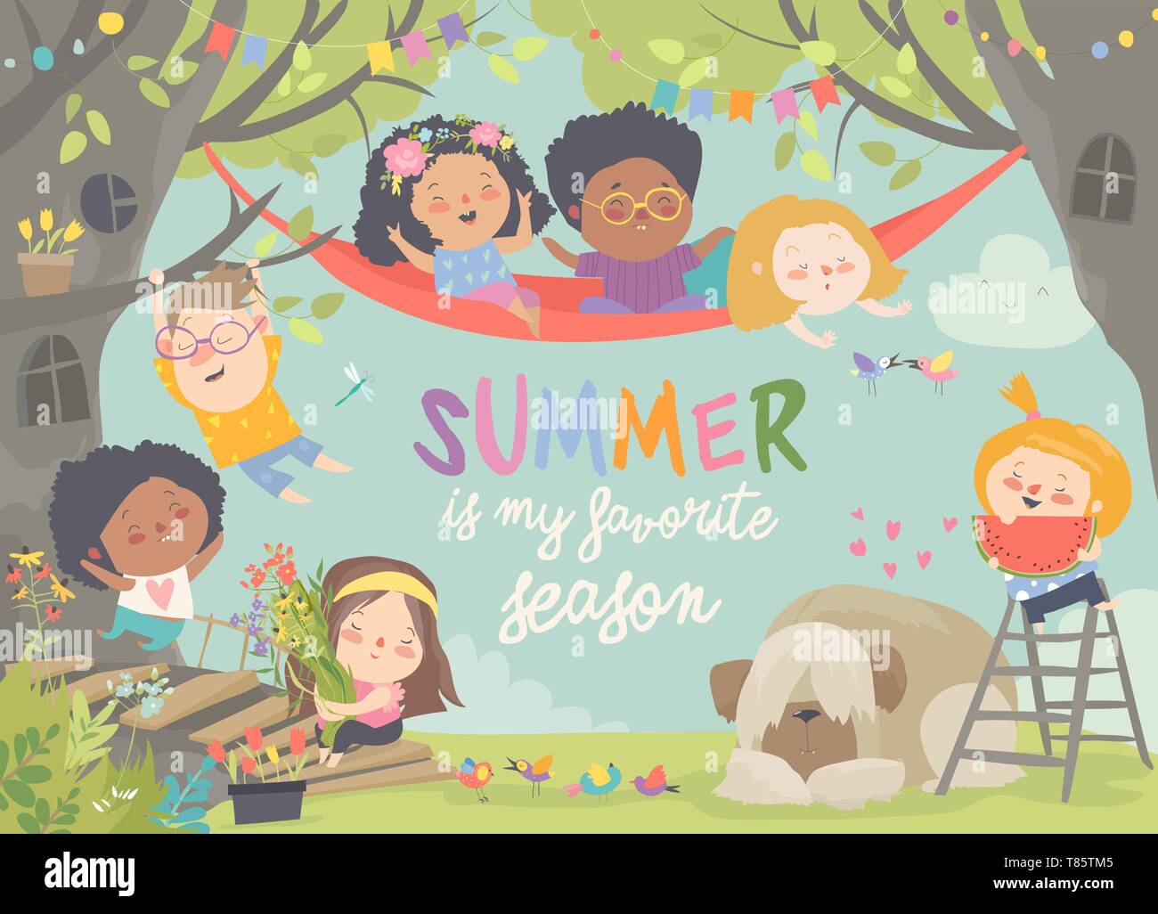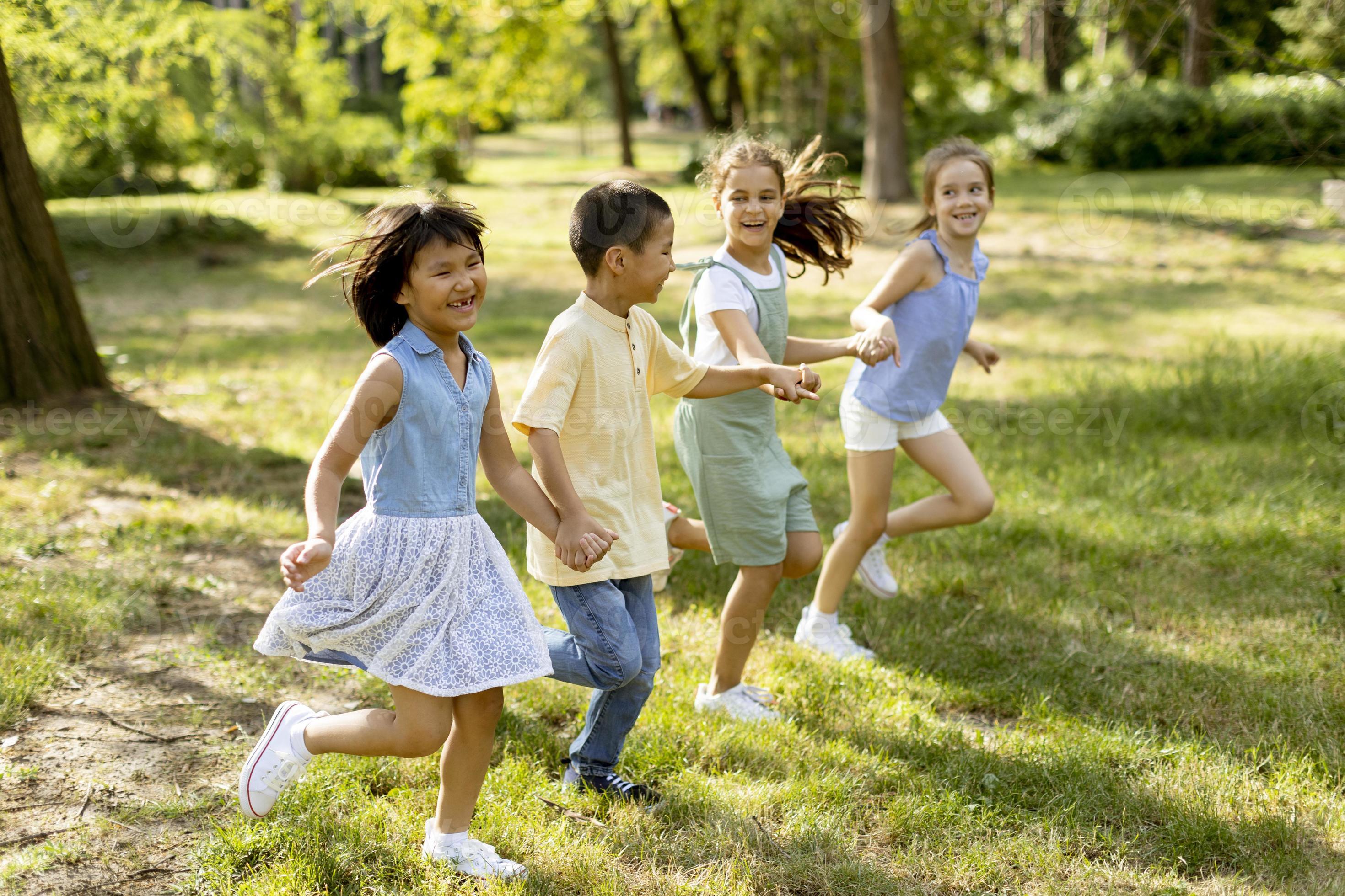 Group of asian and caucasian kids having fun in the park 15709837 Stock