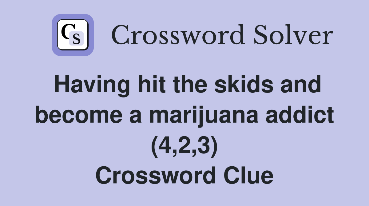 Having hit the skids and become a marijuana addict (4 2 3) Crossword