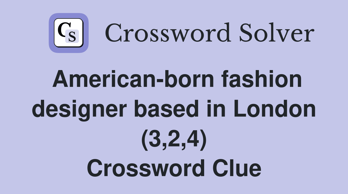 American born fashion designer based in London (3 2 4) Crossword Clue