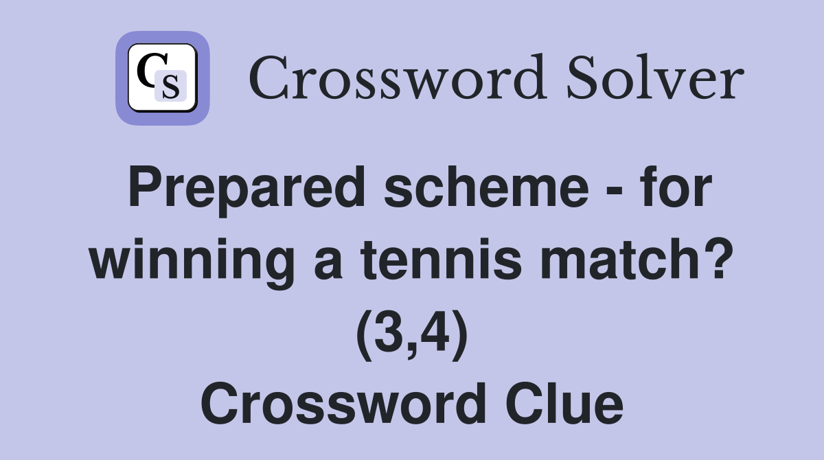 Prepared scheme for winning a tennis match? (3 4) Crossword Clue