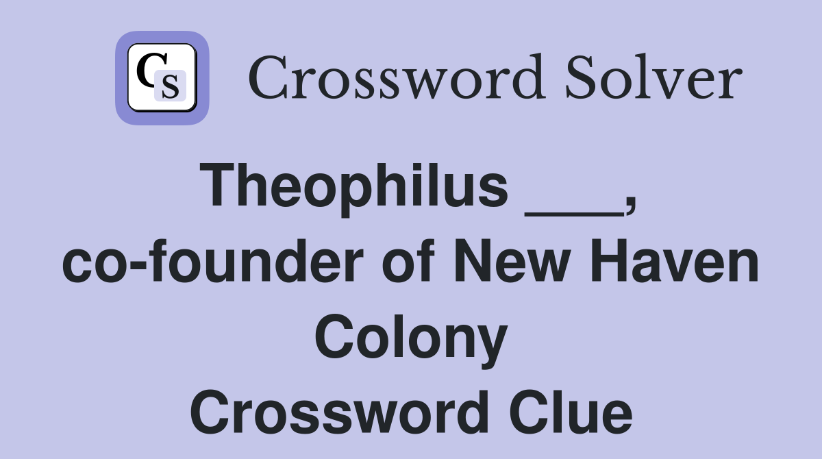 Theophilus co founder of New Haven Colony Crossword Clue Answers
