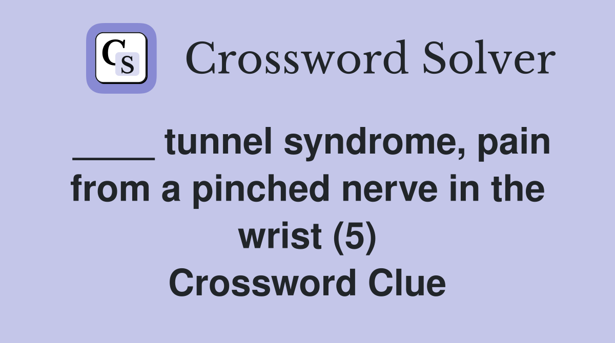 tunnel syndrome pain from a pinched nerve in the wrist (5) Crossword