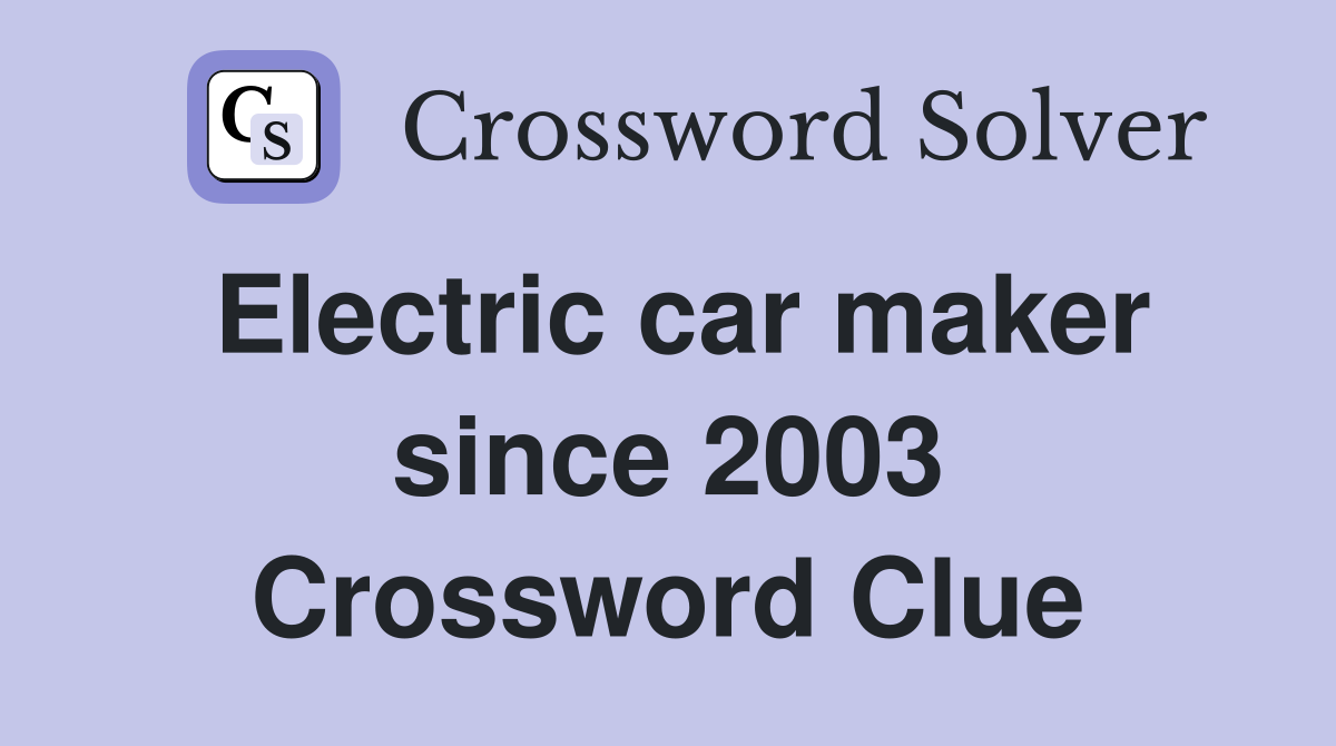 Electric car maker since 2003 Crossword Clue Answers Crossword Solver