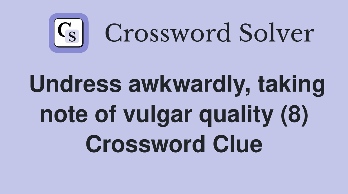 Undress awkwardly taking note of vulgar quality (8) Crossword Clue