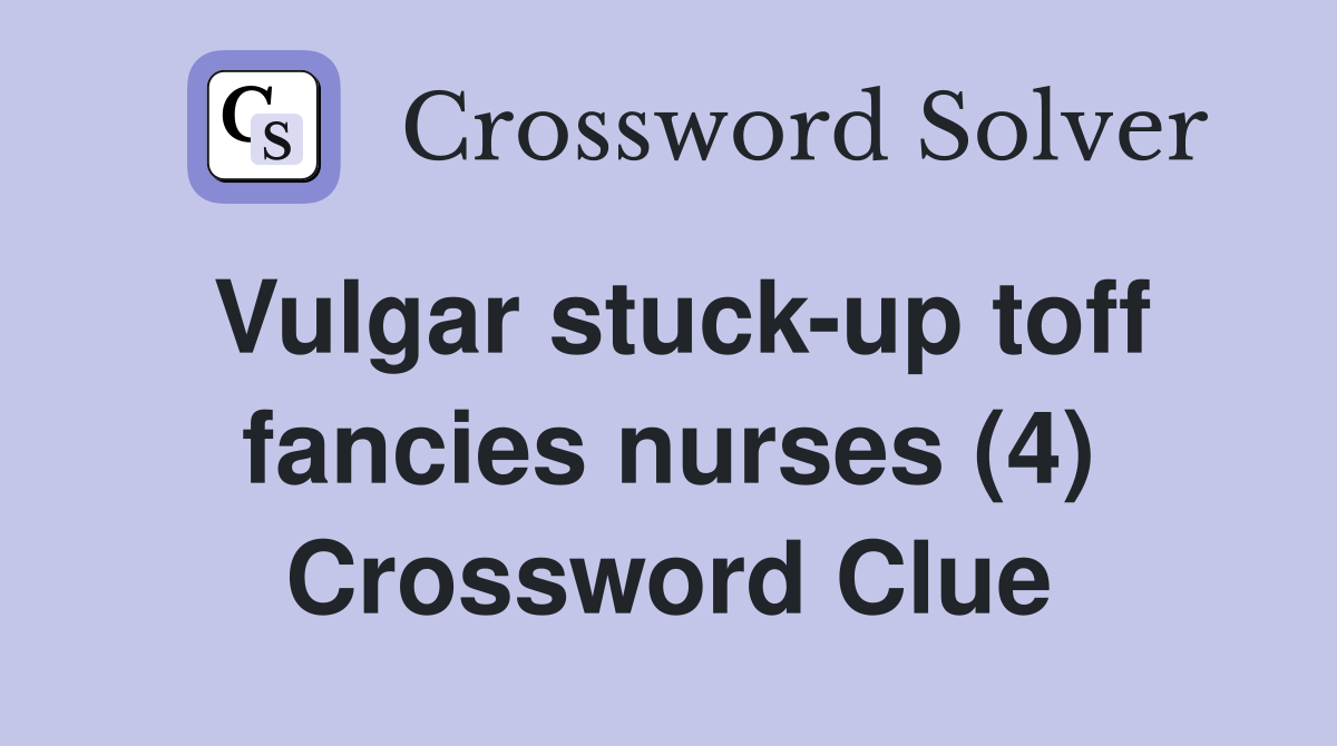 Vulgar stuck up toff fancies nurses (4) Crossword Clue Answers