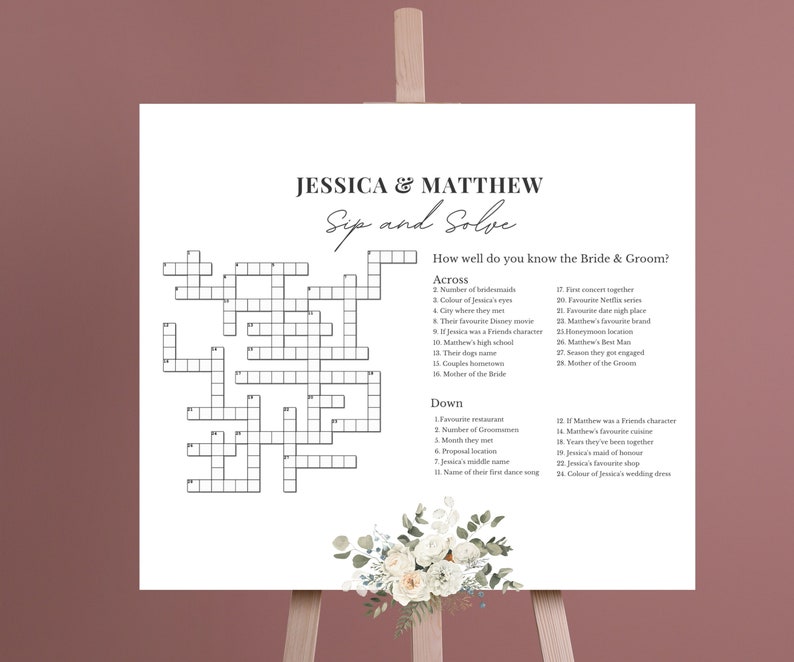 Personalized Wedding Crossword Puzzle: Unique Reception Game (PDF) Etsy