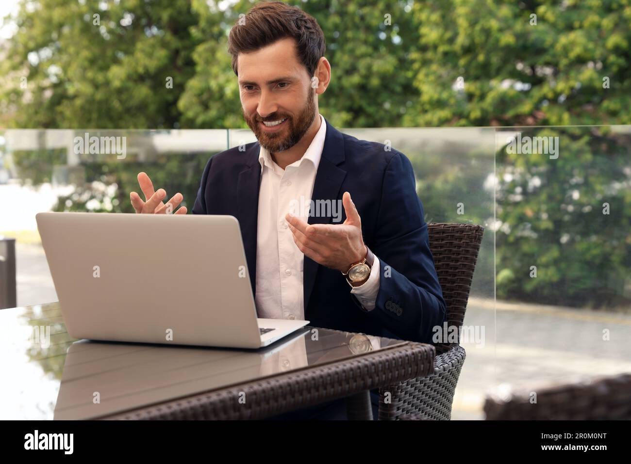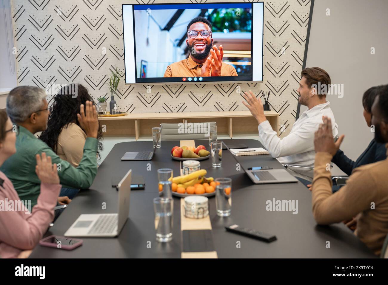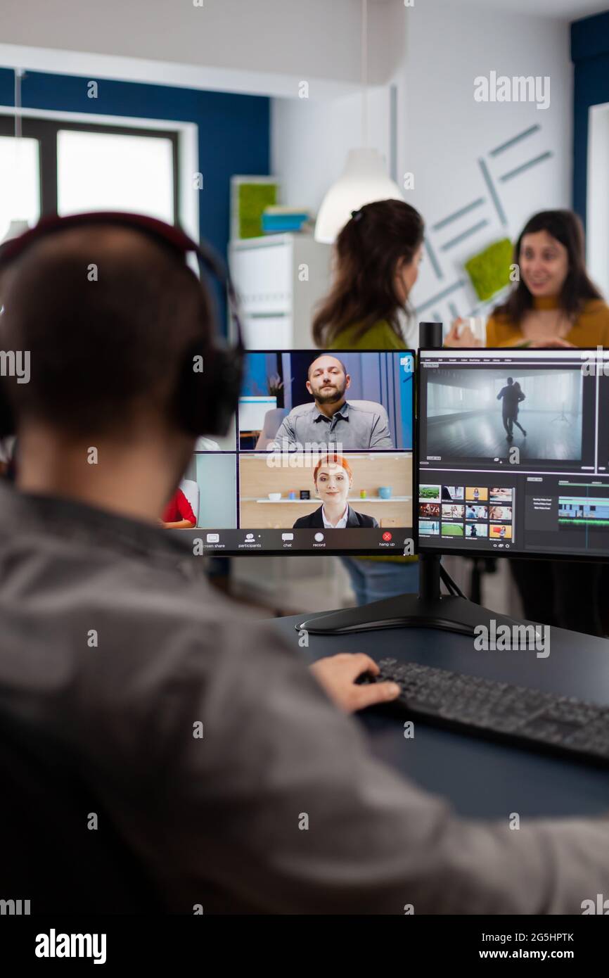Employee having video conference hi res stock photography and images