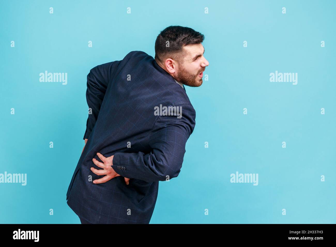 Man having back pain holding hi res stock photography and images Alamy