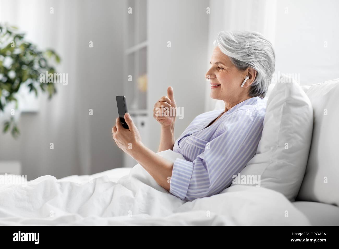 Woman in bed having video hi res stock photography and images Alamy