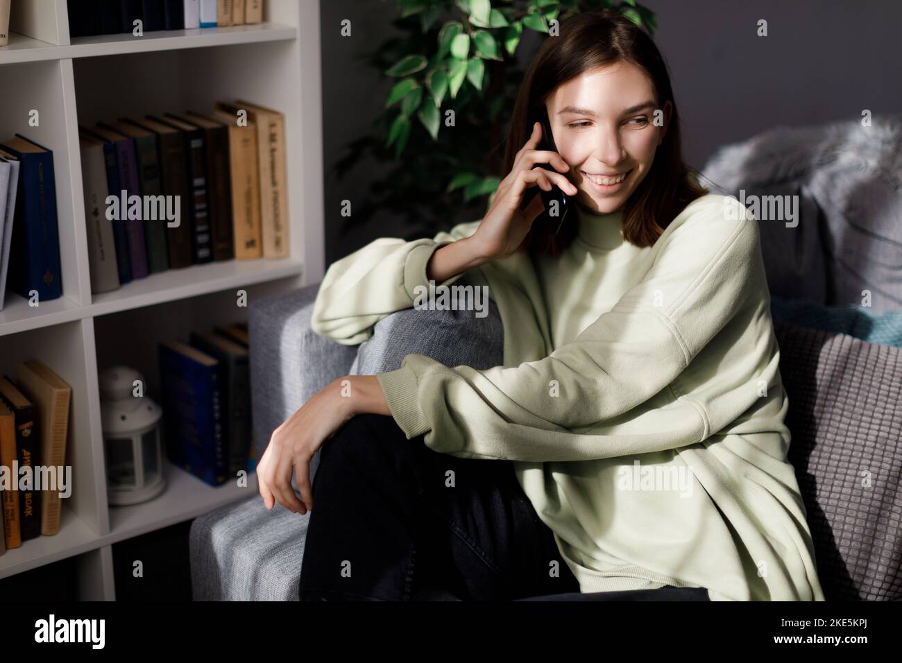 Woman having smartphone conversation hi res stock photography and