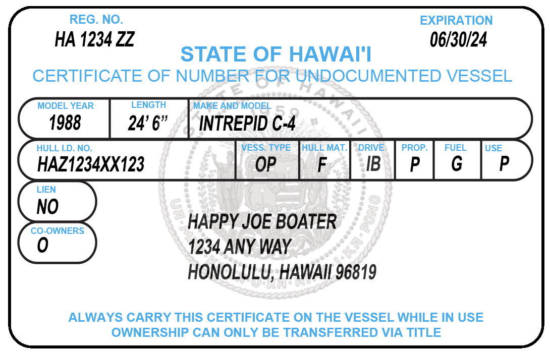 Hawaii Boat Registration requirements Numbers Stickers