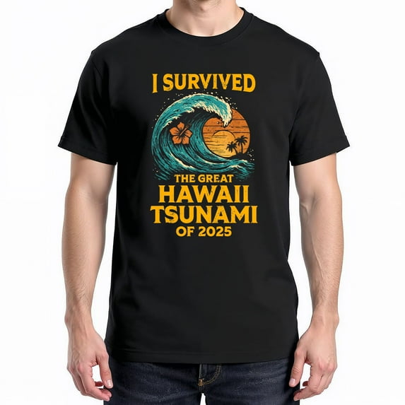 I Survived The Great Hawaii Tsunami Of 2025 Saying T Shirt Novelty