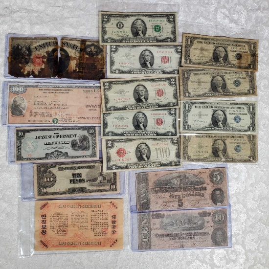 US Confederate Hawaii Silver Certificate $1 and $2 notes Japanese