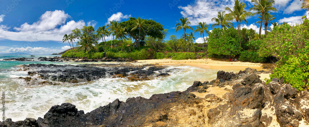 Beautiful white sandy Secret Cove Bay Beach on Hawaiian Island Maui