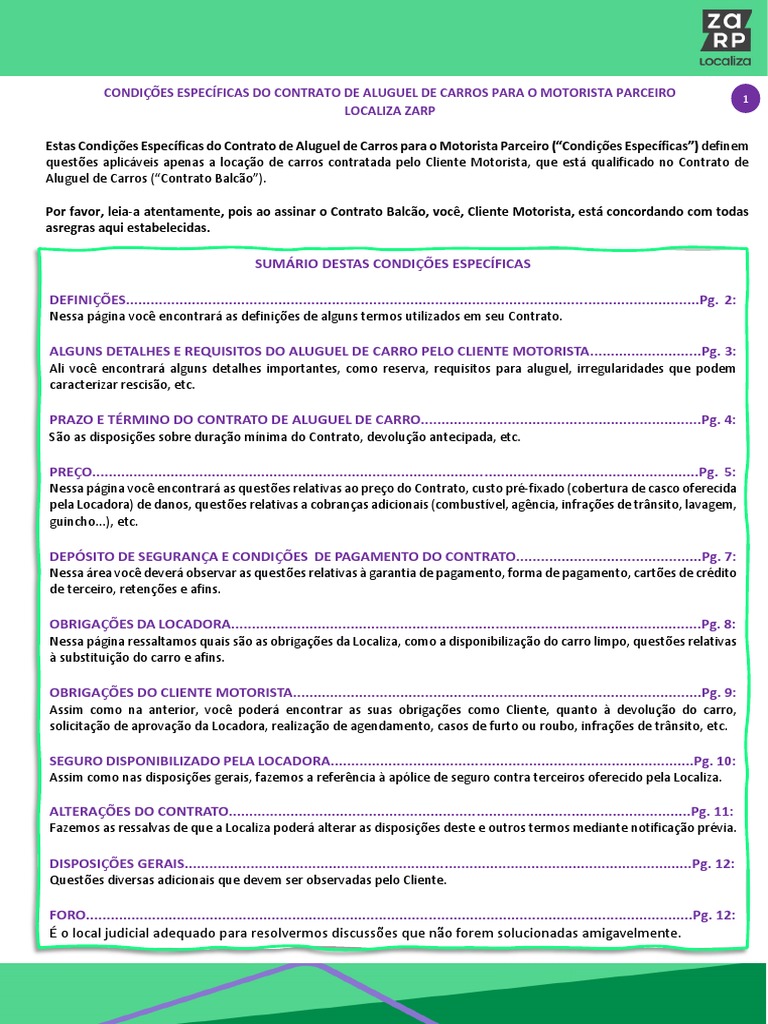 Condições Específicas Contrato Motorista Parceiro Zarp Localiza Uber