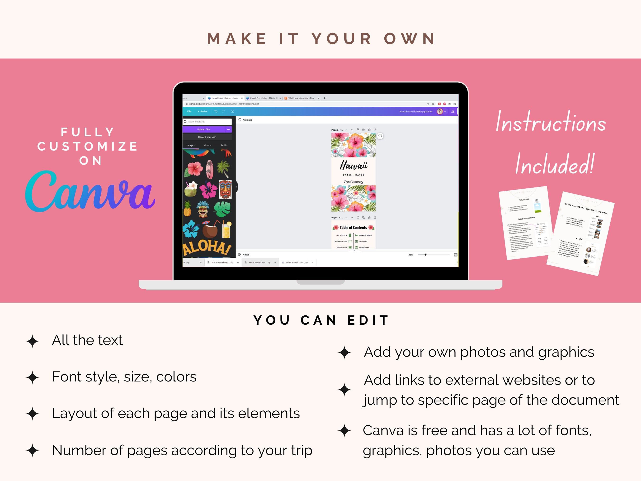 Editable Hawaii Travel Itinerary Template Hawaii Trip Printable Planner