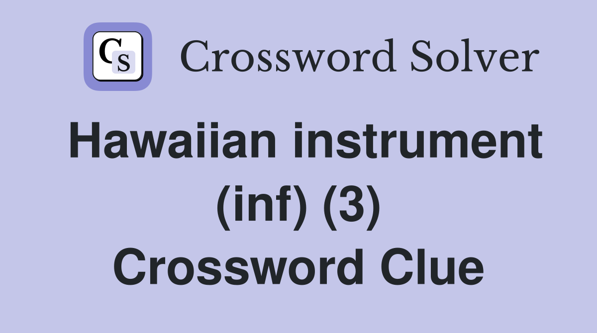 Hawaiian instrument (inf) (3) Crossword Clue Answers Crossword Solver