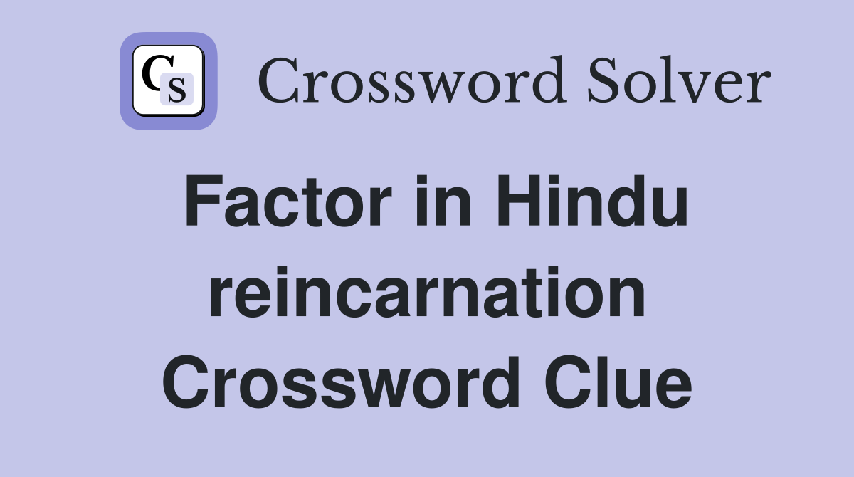 Factor in Hindu reincarnation Crossword Clue Answers Crossword Solver