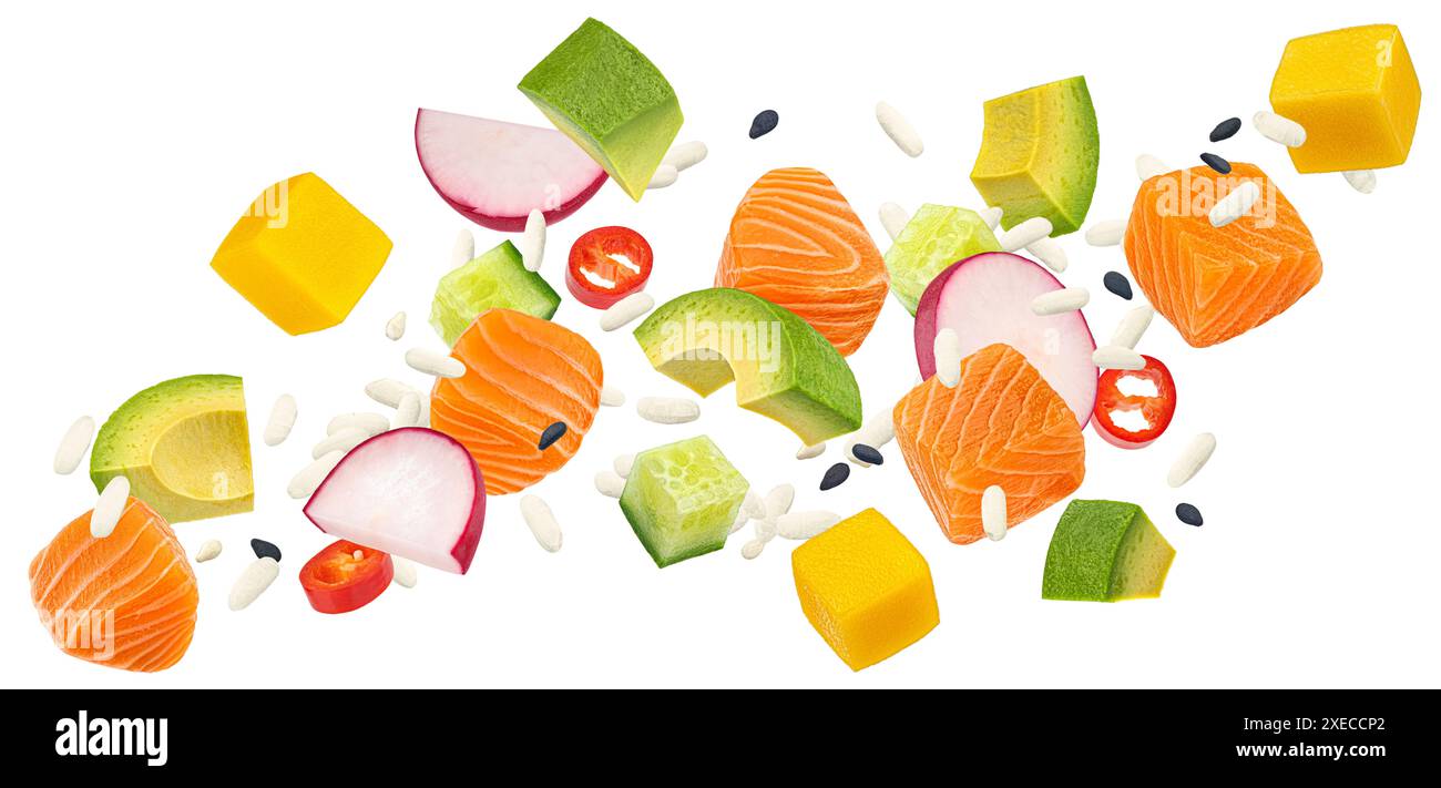 Salmon poke ingredients traditional Hawaiian raw fish salad isolated
