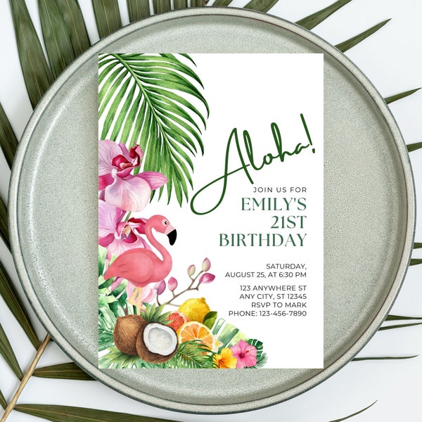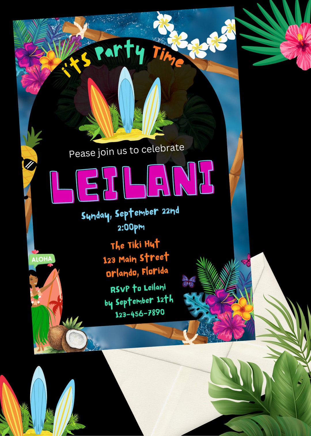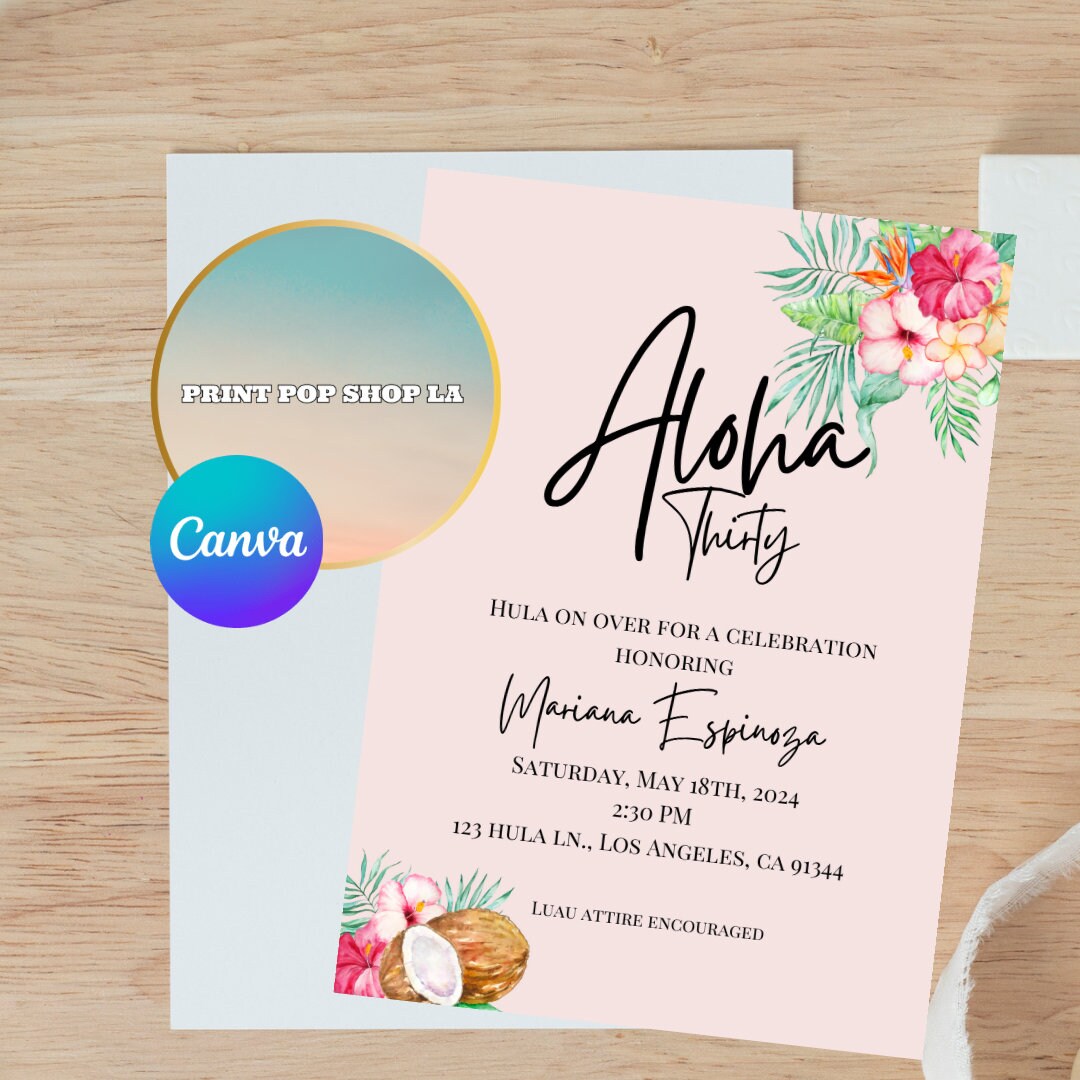 Hawaiian Themed Party Invite Editable Birthday Invite Printable Party