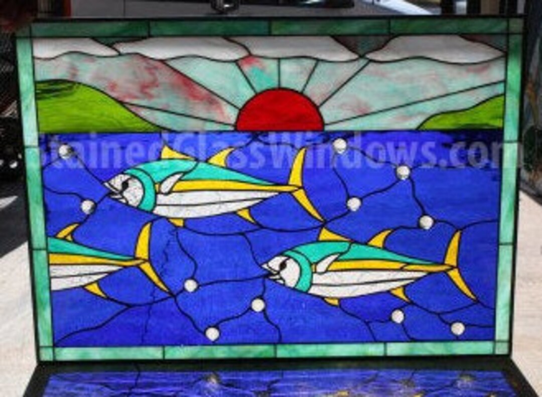 Hawaiian Yellowfin Tuna Stained Glass Window Panel Stained Glass Fish