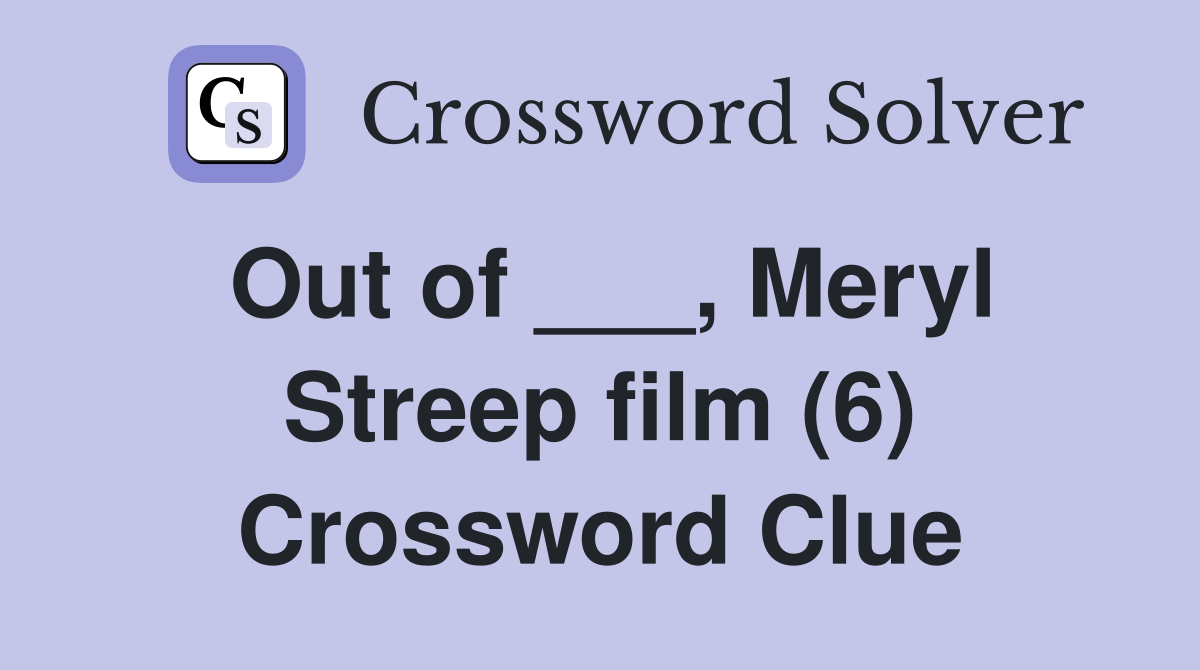 Out of Meryl Streep film (6) Crossword Clue Answers Crossword