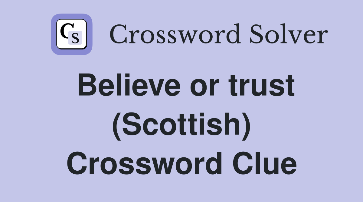 Believe or trust (Scottish) Crossword Clue Answers Crossword Solver