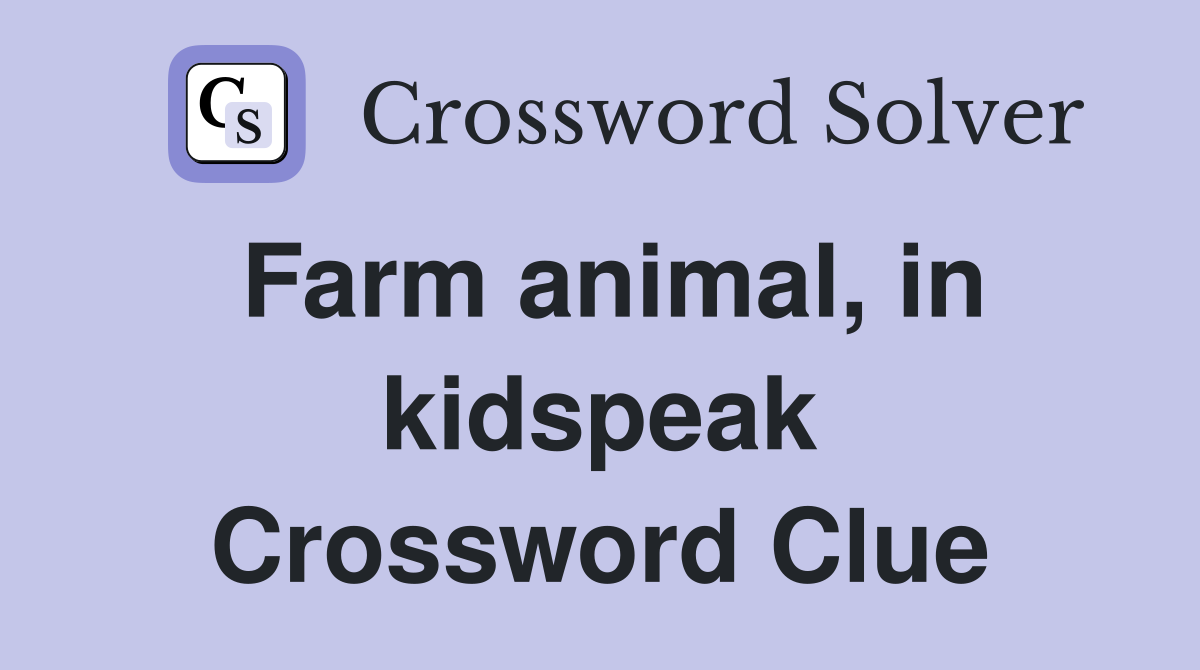 Farm animal in kidspeak Crossword Clue Answers Crossword Solver