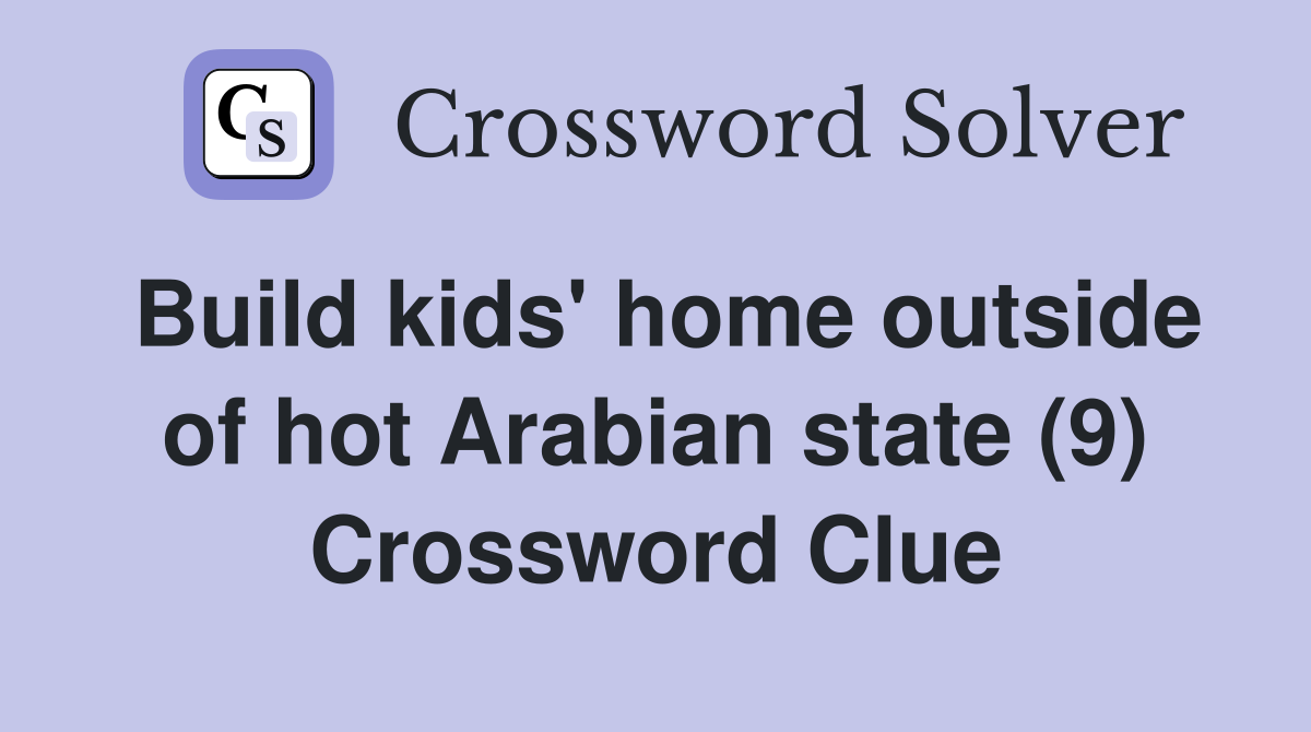 Build kids #39 home outside of hot Arabian state (9) Crossword Clue