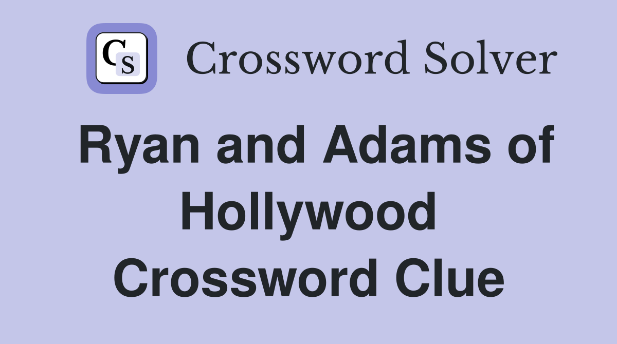 Ryan and Adams of Hollywood Crossword Clue Answers Crossword Solver