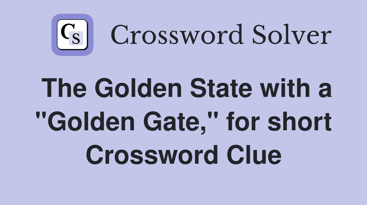 The Golden State with a quot Golden Gate quot for short Crossword Clue