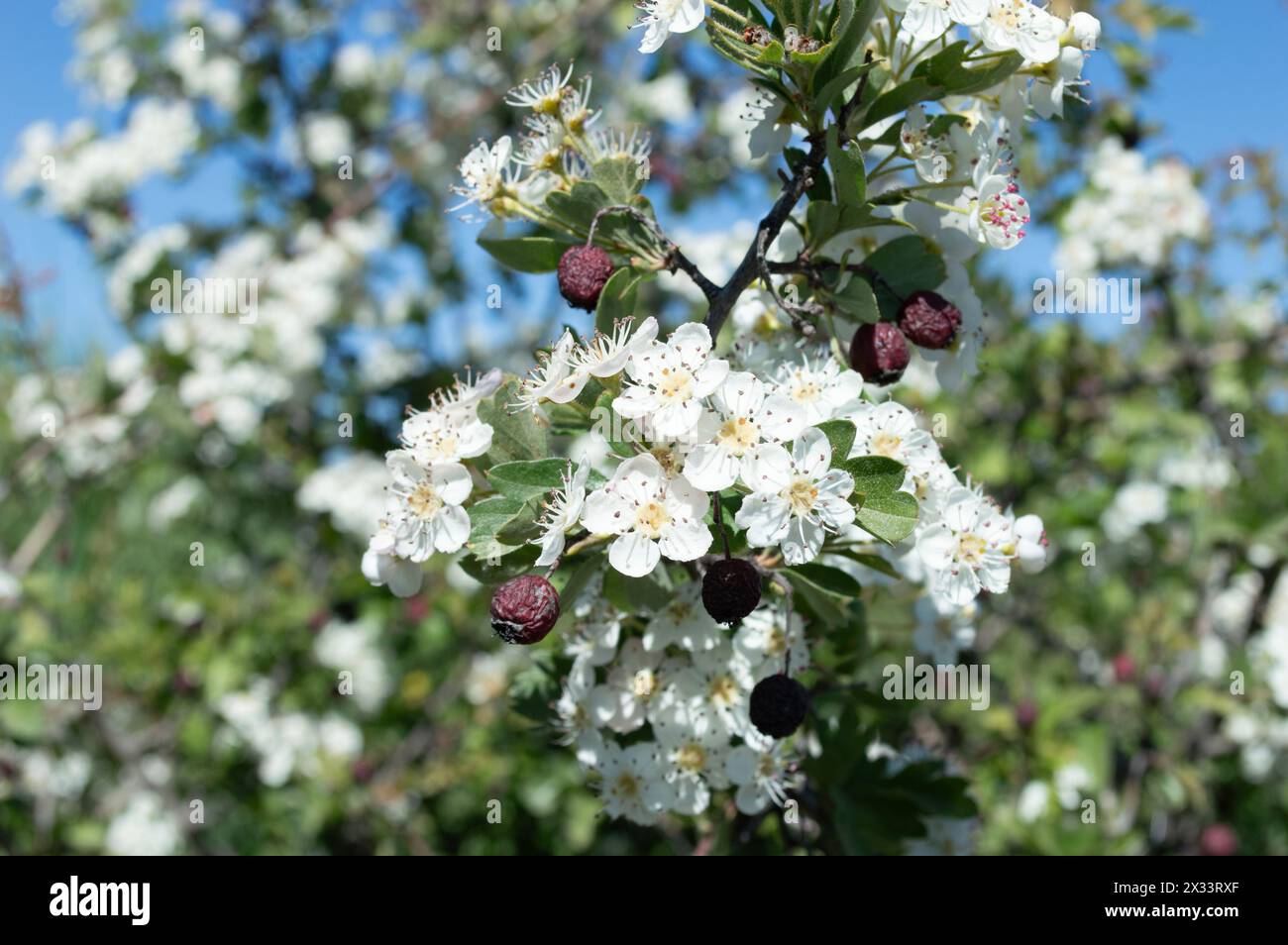 Mayflower hawthorn hedge hi res stock photography and images Alamy