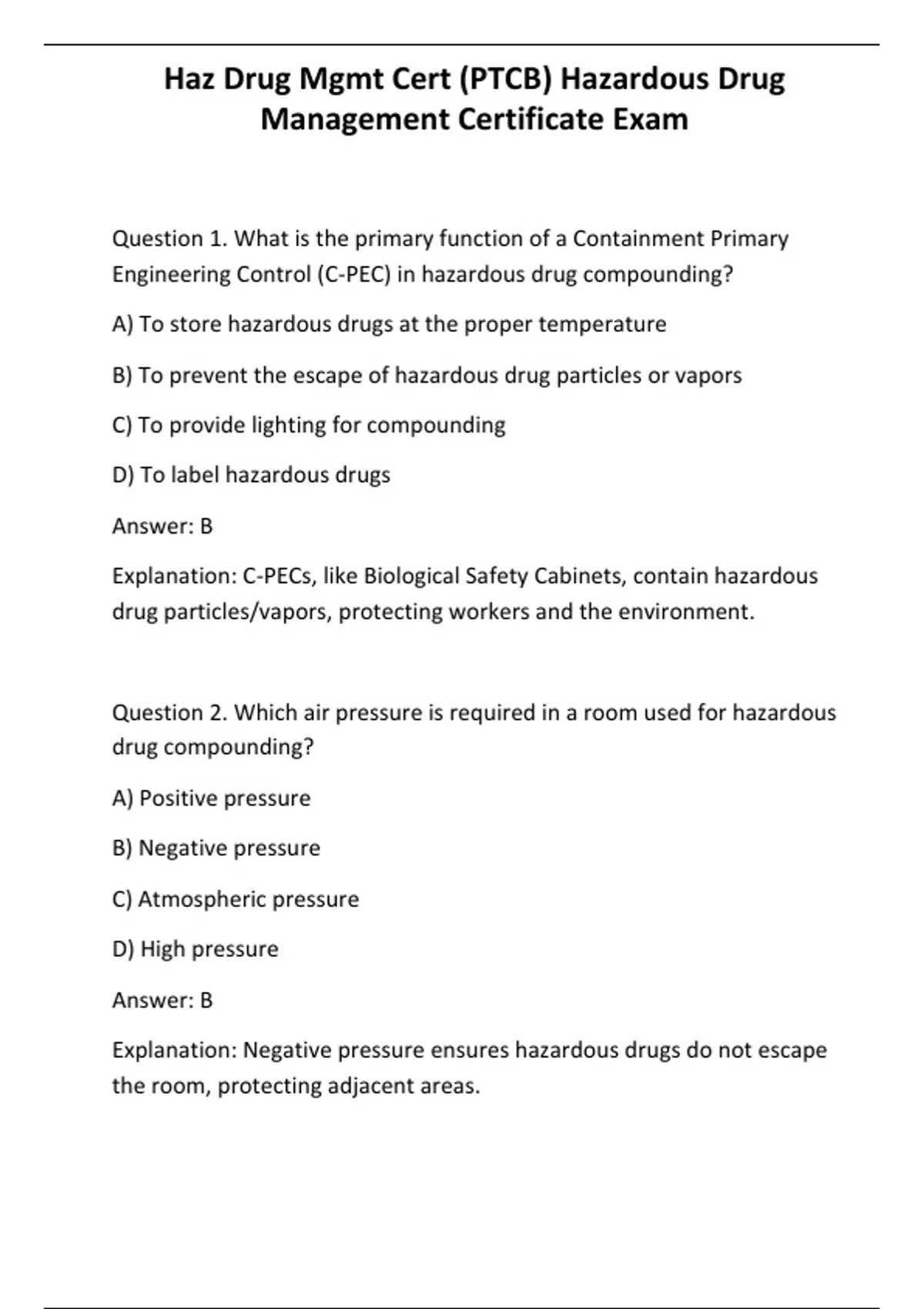 Haz Drug Mgmt Cert (PTCB) Hazardous Drug Management Certificate Exam