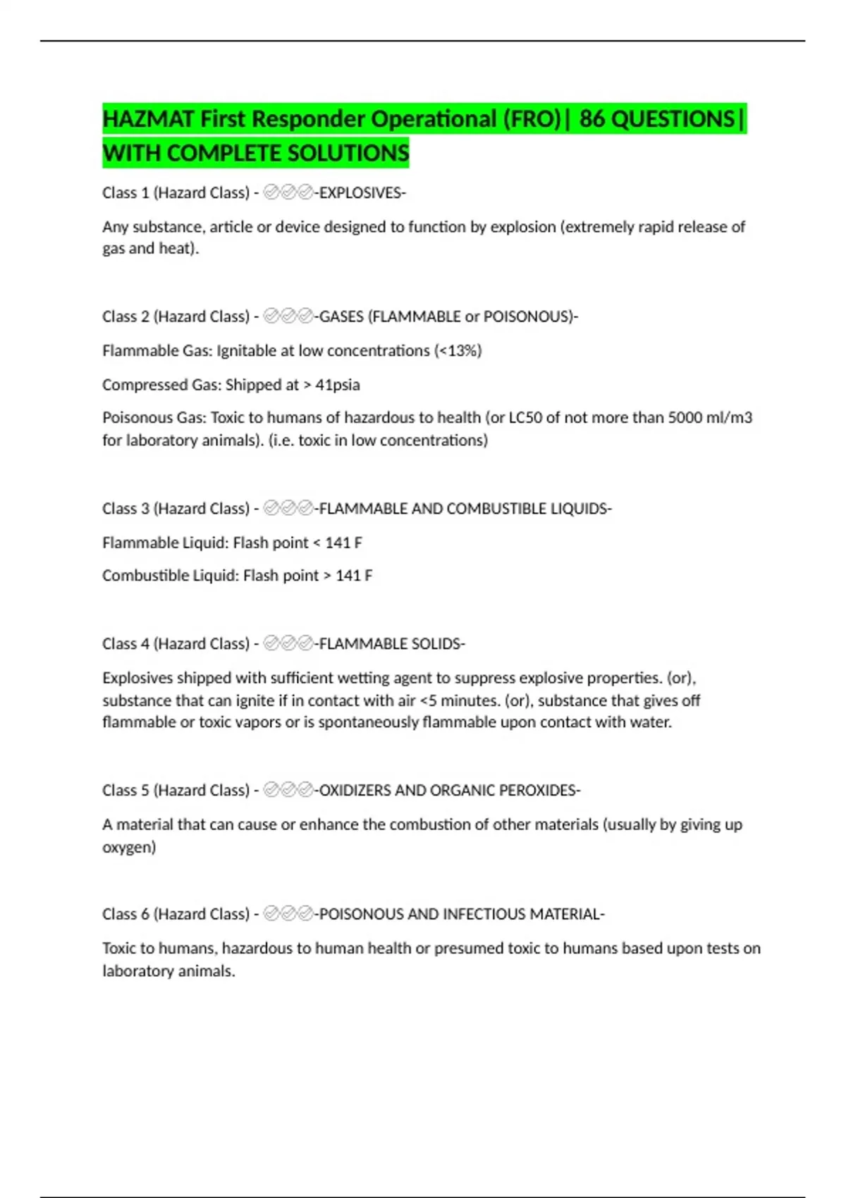 HAZMAT First Responder Operational Exam Questions Correct Solutions