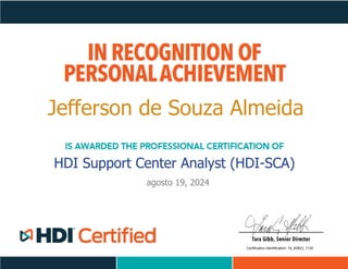 Certificação HDI SCA: Curso e Exame PDF Central de atendimento