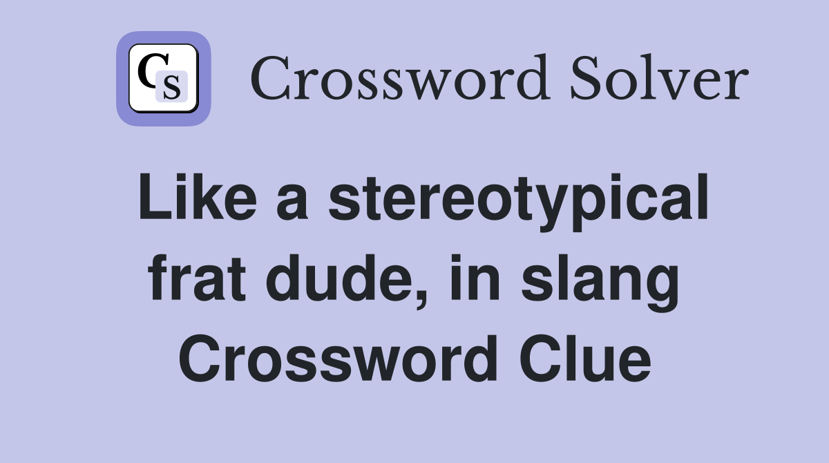Like a stereotypical frat dude in slang Crossword Clue Answers