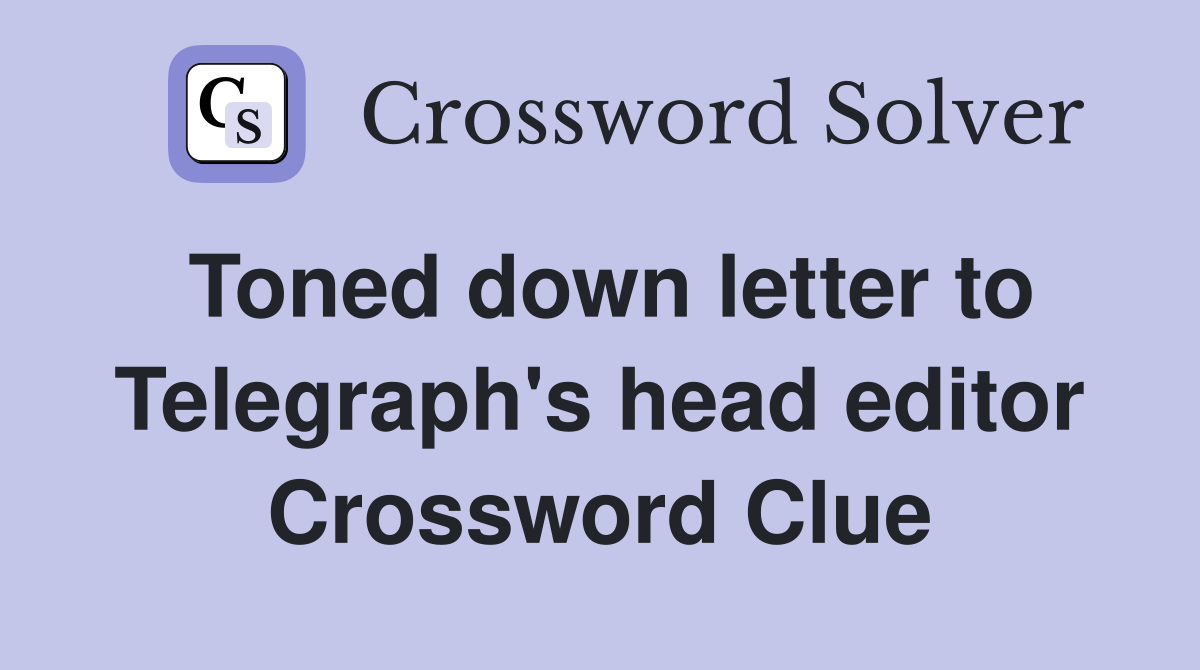 Toned down letter to Telegraph #39 s head editor Crossword Clue Answers
